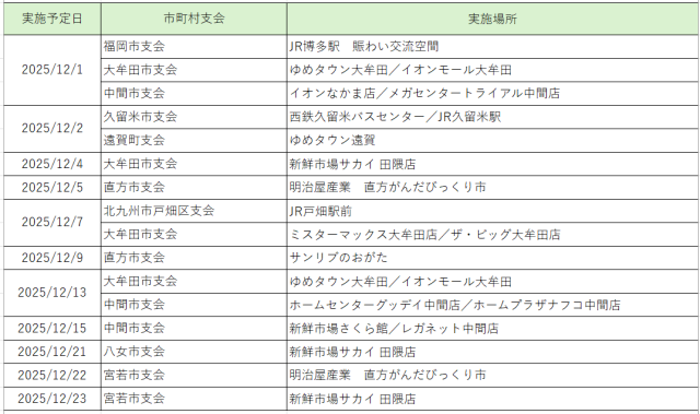県内でも、各福岡県共同募金会市町村支会や地域の皆さまとともに、街頭募金や見守り活動など、年末の地域支援に向けた取り組みがスタートしています。